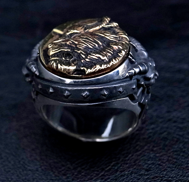 中央コインには真鍮を、またリング本体にはシルバー925を用い、