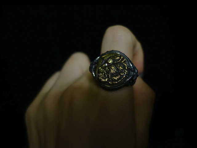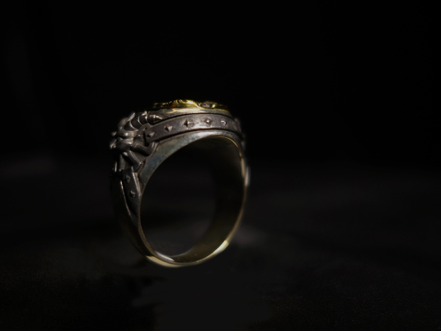 また、リングの側面は「ベルセルク」ファンであればすぐに思い出される、ゾッド人間版の鎧装飾が。
